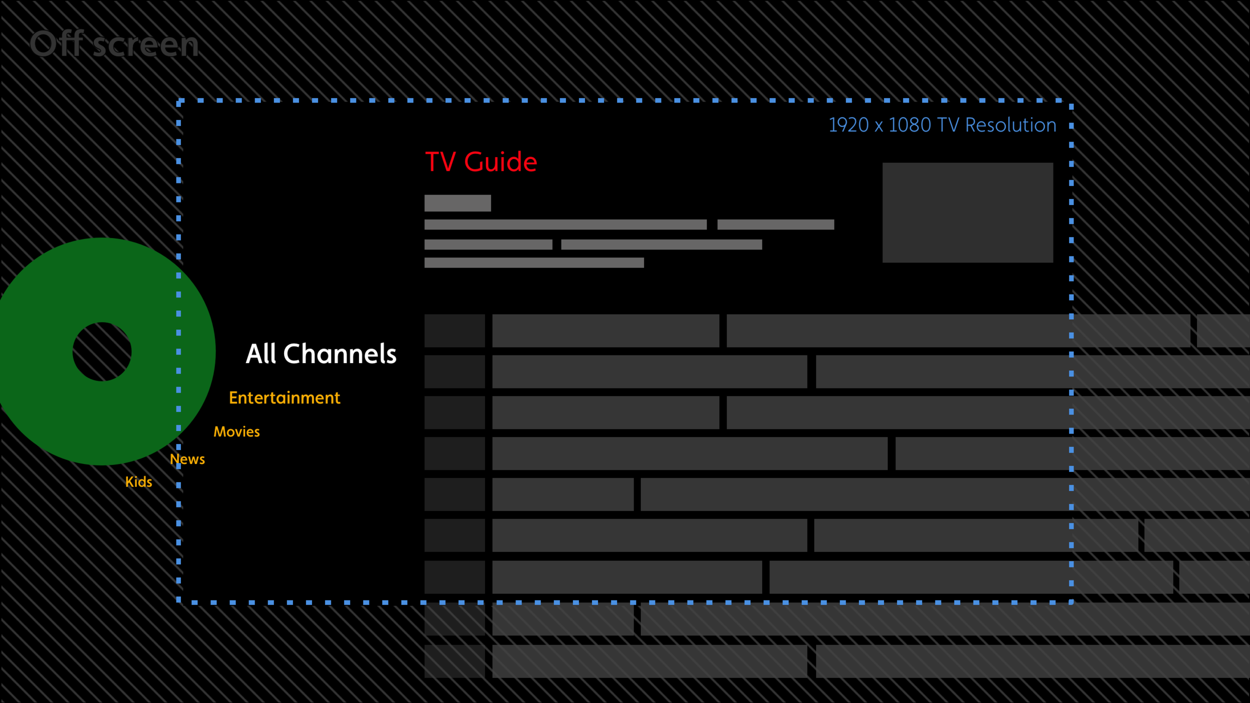 The Primary aim during kick off was to look at best in class experiences and viewer pain points to see where the gap in the market really was. This required key focus on on both breath and depth, understanding the key to the “10 foot TV experience”